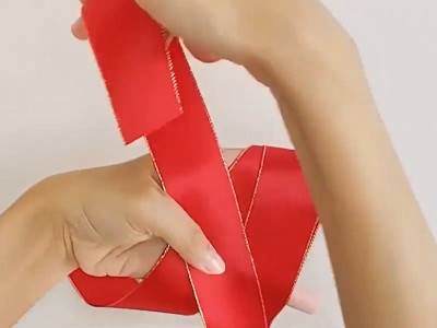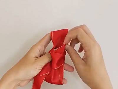 将丝带折起来用四个手指卡住。