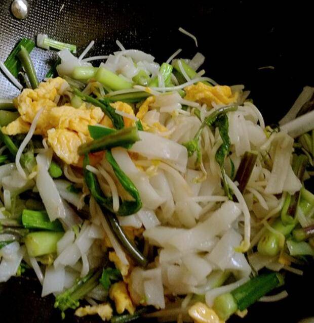 食材:粉适量、大蒜2根、绿豆芽一把、鸡蛋2个、菜苔一把、椒盐粉适量、生抽一勺。