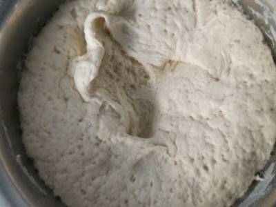 揉成面团后盖上保鲜膜发酵3.5小时。