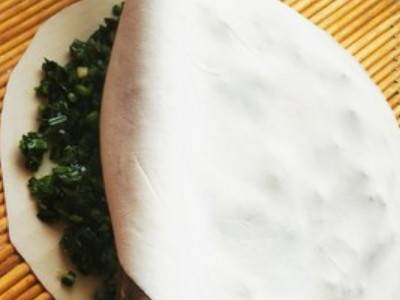 3. 把韭菜铺在博饼上