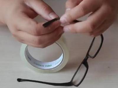 透明胶带上取下一小块缠绕在眼镜框的腿脚连接处。