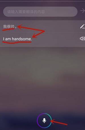 6. 在翻译界面,点击小麦克风,听到滴的一声后开始对着手机说话,当系统采集到你的声音后就会将其识别并翻译成英文,而且还会语音播报。