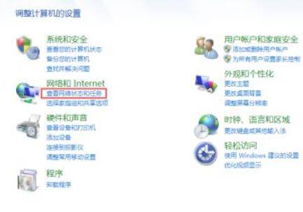 点击开始菜单,找到控制面板,点击控制面板选项进入控制面板界面,找到查看网络状态和任务选项。