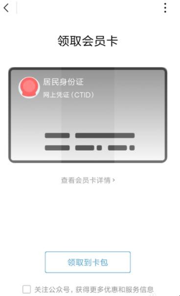 5. 注册完成之后可以看到自己的居民身份证卡,这个是可以领取的,我们需要点击一下领取即可。