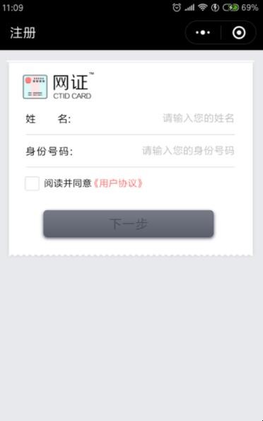 3. 进入网证注册界面的时候需要首先输入我们的名字,同时还得输入自己的身份证号码,最后点击下面的协议同意点击下一步。