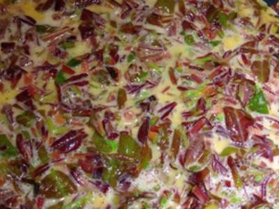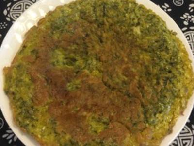 锅内放猪油,油烧至八成热倒入鸡蛋糊,均匀铺开,中小火煎至两面金黄。起锅装盘即可。
