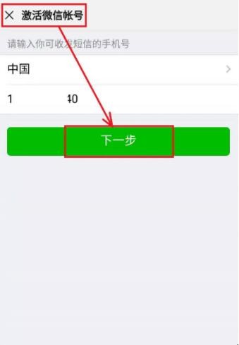 2. 进入“激活微信账号”操作页面,输入注册该微信号时的“手机号”后,点击“下一步”(如图所示)。