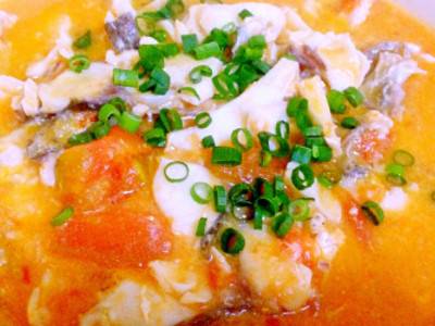 番茄入热水烫下去皮切块待用。