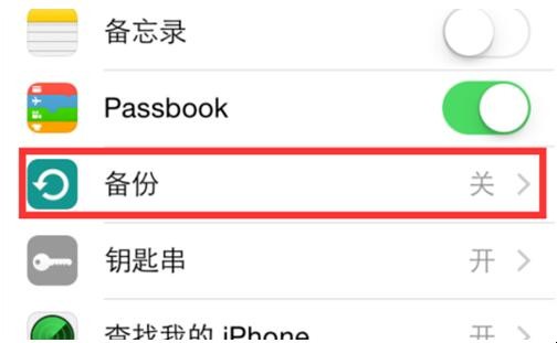 3. 在iCloud界面,选择“备份”选项,点击进入下一步。