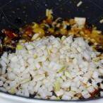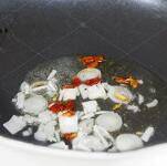 7. 大蒜下锅爆香。