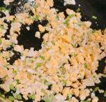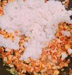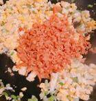 4. 萝卜干切碎末,加入鸡蛋碎中炒出香味。