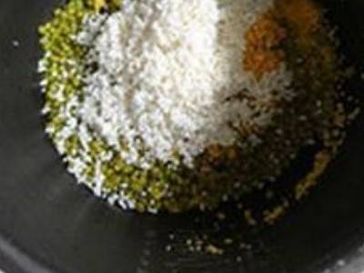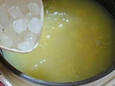 将青麦粒、小米、糯米淘洗干净控去水分,放入电饭煲中。