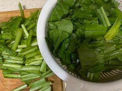 苦菜洗净切段,拍裂菜梗。