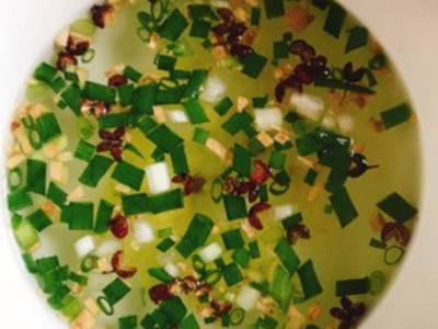 小葱、姜片、花椒用温热水浸泡15分钟。捞出,只要这个水。