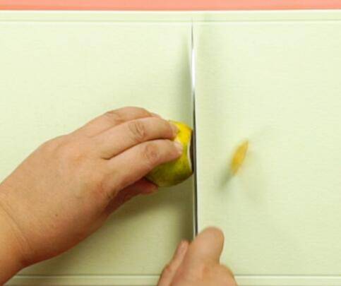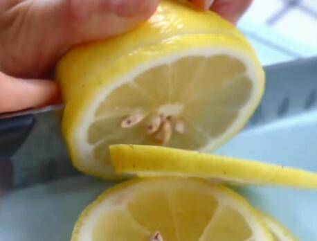 柠檬放一点食盐,把表层的果蜡清洗掉,切成片,去掉里面的籽。