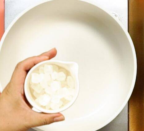 锅中倒入清水,冰糖,柠檬片。